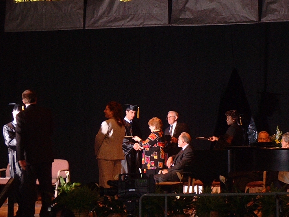Got his diploma from his principal!