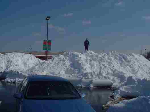 Our Son atop a snow mound at Chatham Mall
