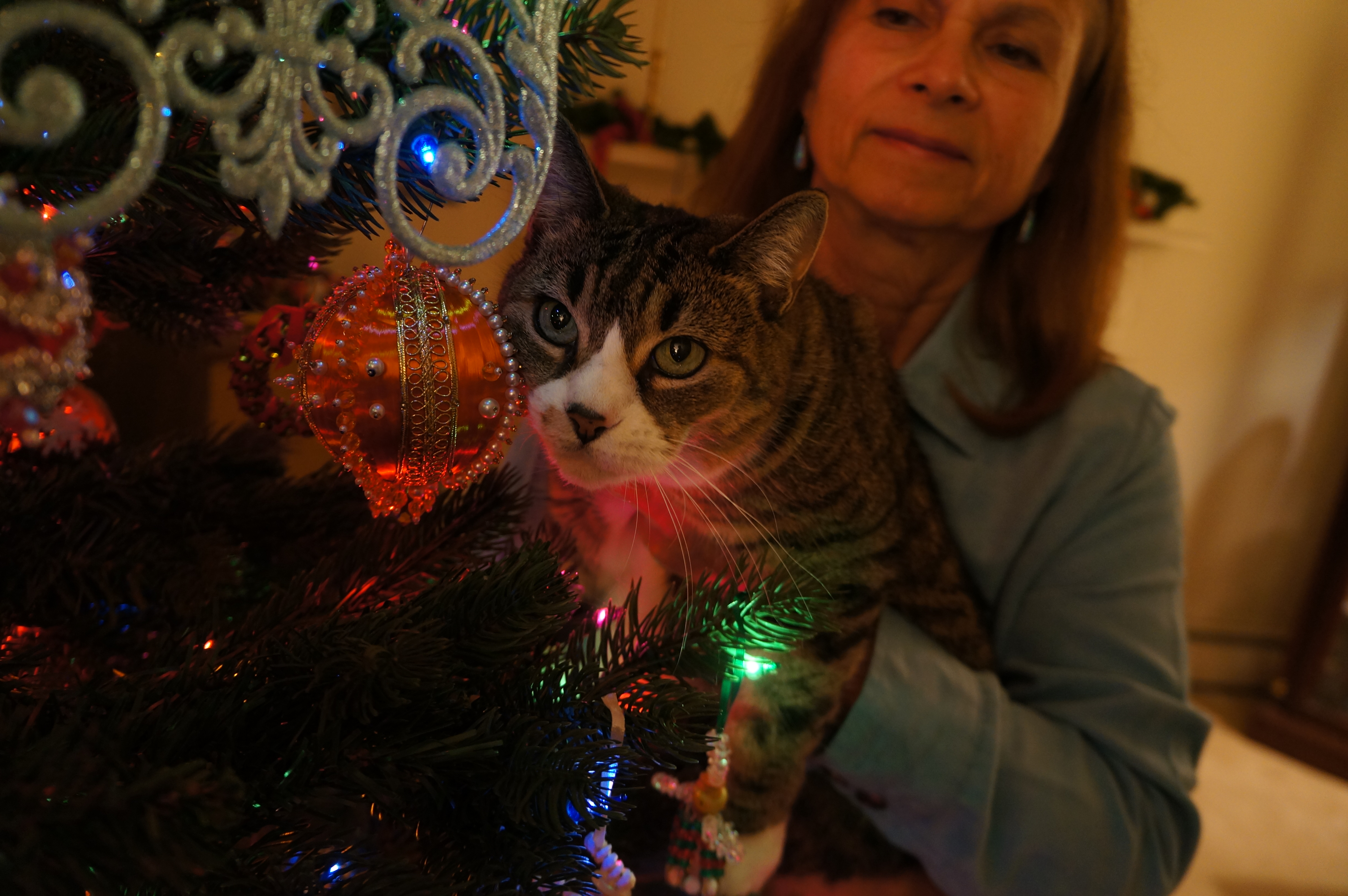 Tabby enjoying tree Tree Ornament